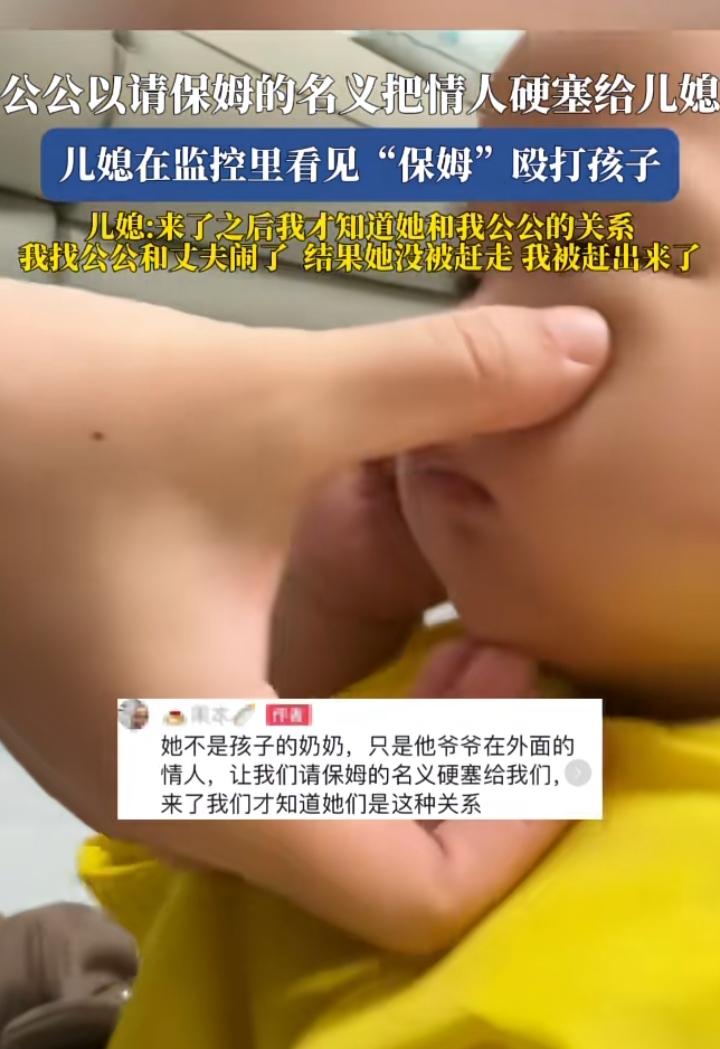 狗血剧情,是这姐妹太菜了吗?公公以请保姆的名义把情人安排到家里带孩子,女子看监控发现“保姆”打孩子,她去找公公和老公要说法,结果是她被赶出来了,“保姆”好好的 这一家子什么人呐?公公就不说了,这当老公当爸爸的,不顾自己的老婆,孩子也不管吗,自己的孩子被殴打了,还和老头一起把媳妇赶出家门了。 这一家人是要远离,但不应该以这种方法,做错事的人什么事都没有。有监控有证据,报警,离婚,使劲闹,为了自己孩子也必须要去闹。他们不看重你,自然也不会看重孩子,在这样的家里,孩子也只有妈妈可以依靠了。为自己和孩子争取到应得的利益,然后远离,好好生活。 图片及素材源自网络