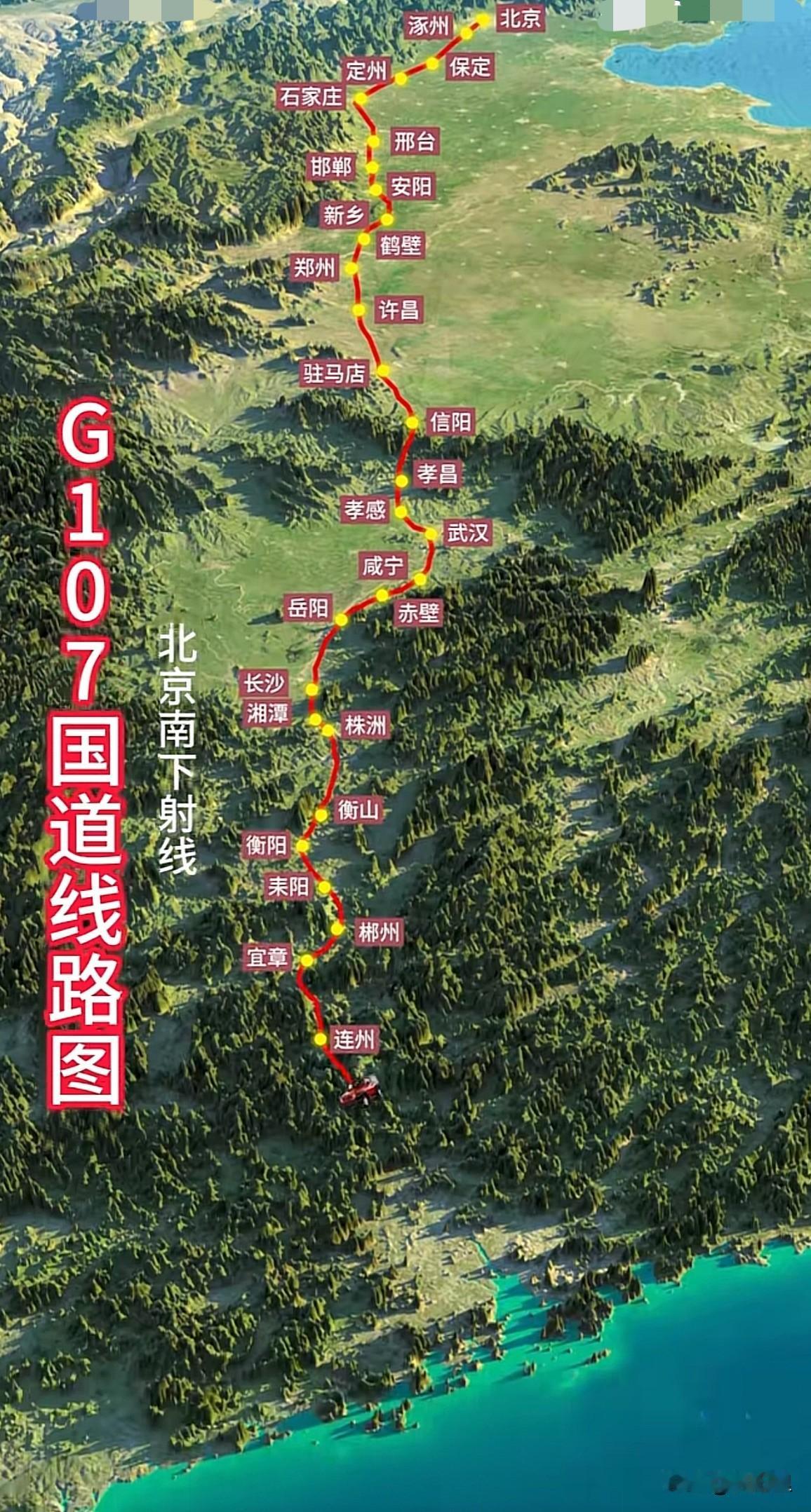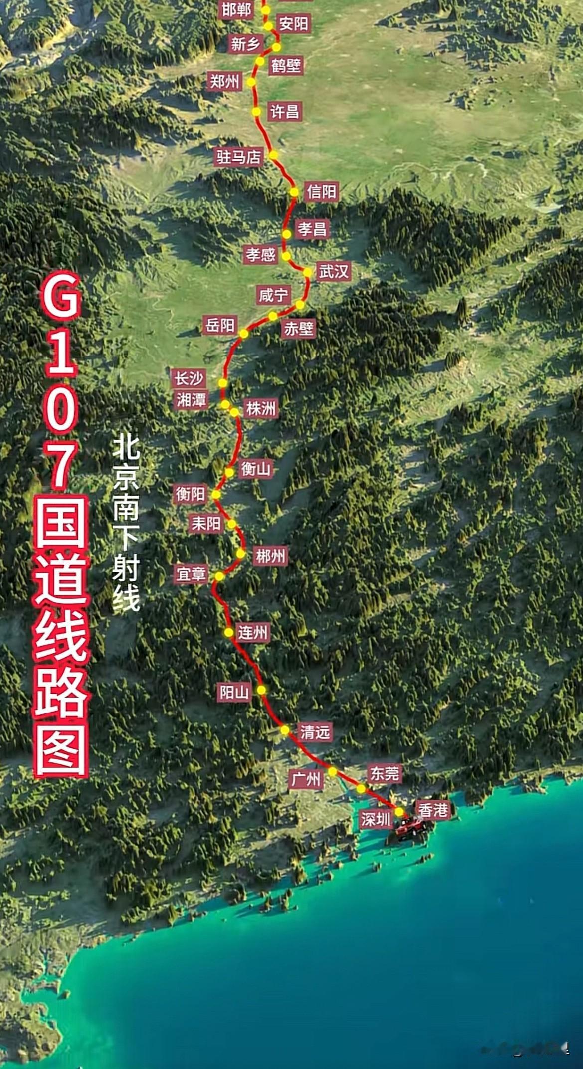 终于在深圳见到了107国道终点的界碑,这么多年也是第一次见到。很多人对107国道有着特殊的记忆和感情,很多人的家门口就是这条国道。有人说老家在107国道旁,来了广东后又在107国道旁。 107国道是中国的南北经济大动脉,起点在北京广安门,终点在深圳文锦渡口岸,全程2698千米(本来是北京到香港的公路,因为特殊原因,所以终点放在深圳)。这条国道经过北京、河北、河南、湖北、湖南和广东6个省和直辖市,串联起京津冀、中原城市群、长江中游城市群、粤港澳大湾区,5个省位城市和多达20多个的地级市。 107国道历史悠久,最早源于民国时期,后来不断铺装和拓宽升级,为新中国和改革开放得经济立下汗马功劳。虽然现在有多条南北走向的高速公路,但107国道至今依然繁忙,车流量巨大,因为短途和地方性交通依然首选107国道。