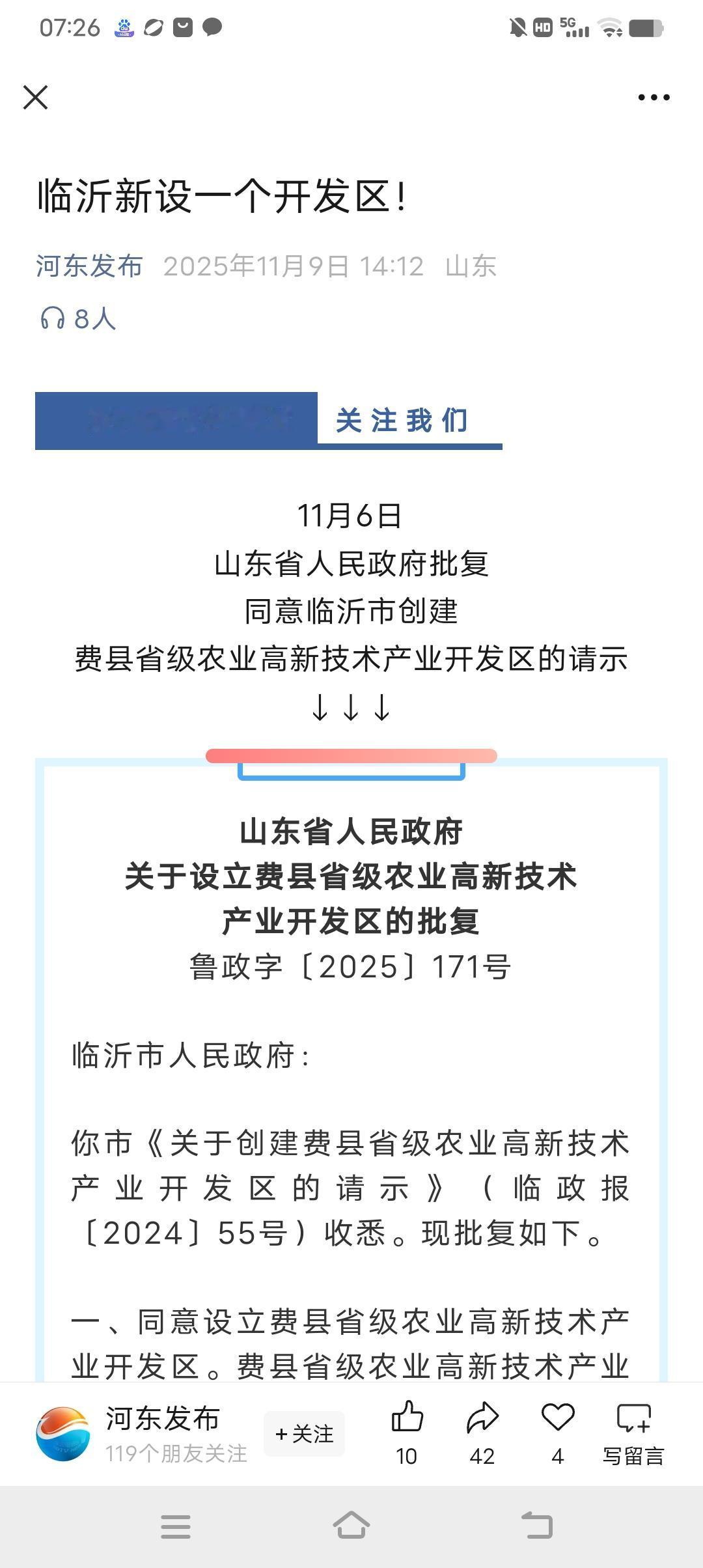 临沂又新设一个省级开发区!临沂主城区有高新区、经开区、沂河新区、河东区、罗庄区、兰山区,再加上现在这个区,临沂主城区就越来越大了。欢迎大家留言文明交流!