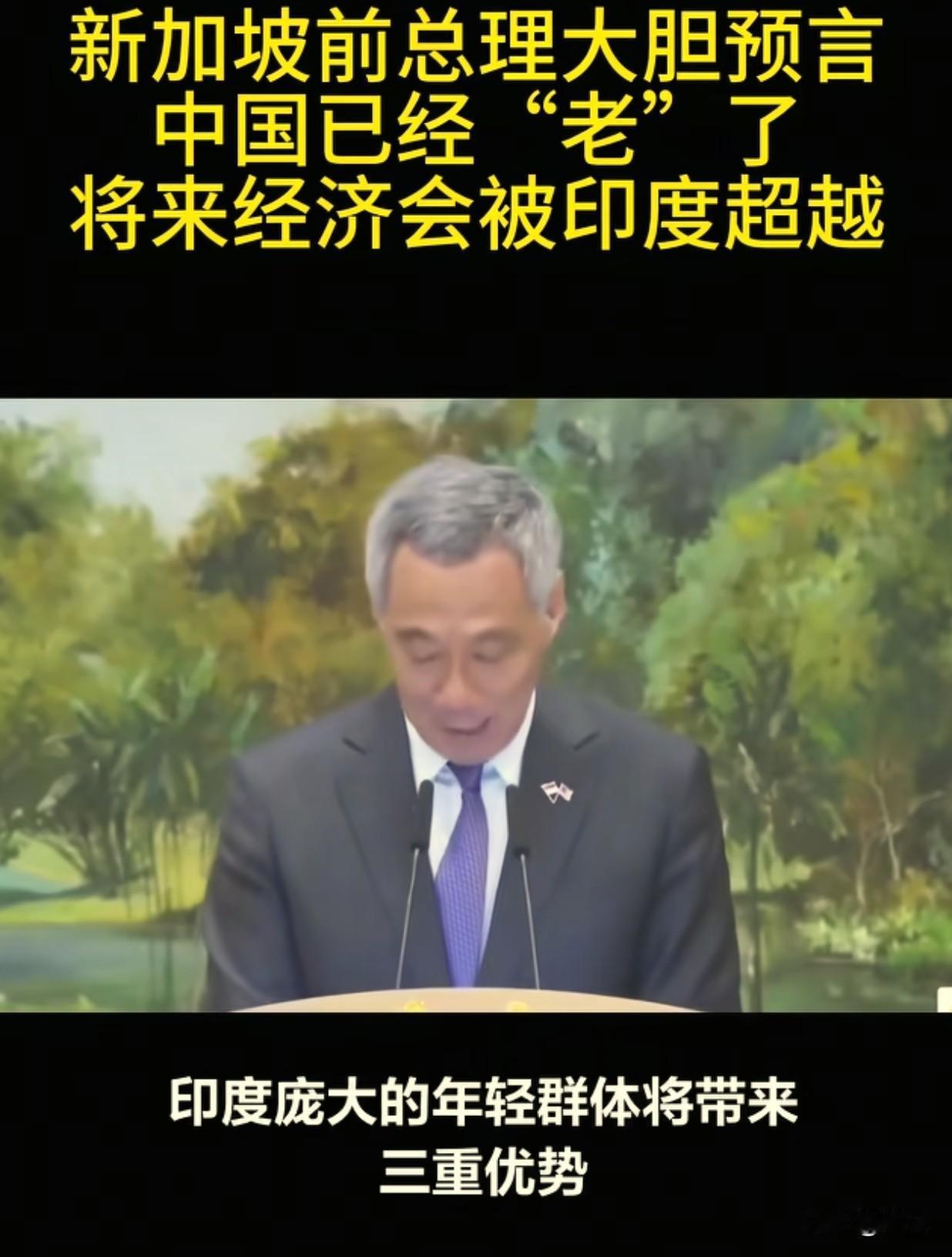 中国已经“老了”。将来经济会被印度超越。 前新加坡总理李显龙在伦敦的一场研讨会上这样大胆的预测:“在不久的将来,印度经济将会超越中国,因为中国已经“老了”,而印度更年轻。因为中国已经步入老龄化严重社会,未来经济被印度超越不是不可能。他用人体年龄结构直言,印度年纪28岁,而中国年纪接近40岁,到2050年,中国3个人中就有一个老年人,人口还会减少,而印度人口不止年轻化,而且人口总数已经超越中国,是全世界人口最多的国家”。充沛的劳动力,旺盛的消费需求,和创新活力,这些都是成为印度经济超越中国的主要因素。 李显龙的话并无道理,但是现在的发展需要不完全靠人工人力了,中国面对老龄化严重和人口出生率低难道没有做应对措施吗?当然是有。李显龙还有外人能看出来的问题,我们看不出来吗?那就大错特错了,看看现在的人工智能,ai机器人产生的劳动力等,这些都是有准备的。印度想超越中国,没有那么容易和快速,印度在成长,中国也在成长。