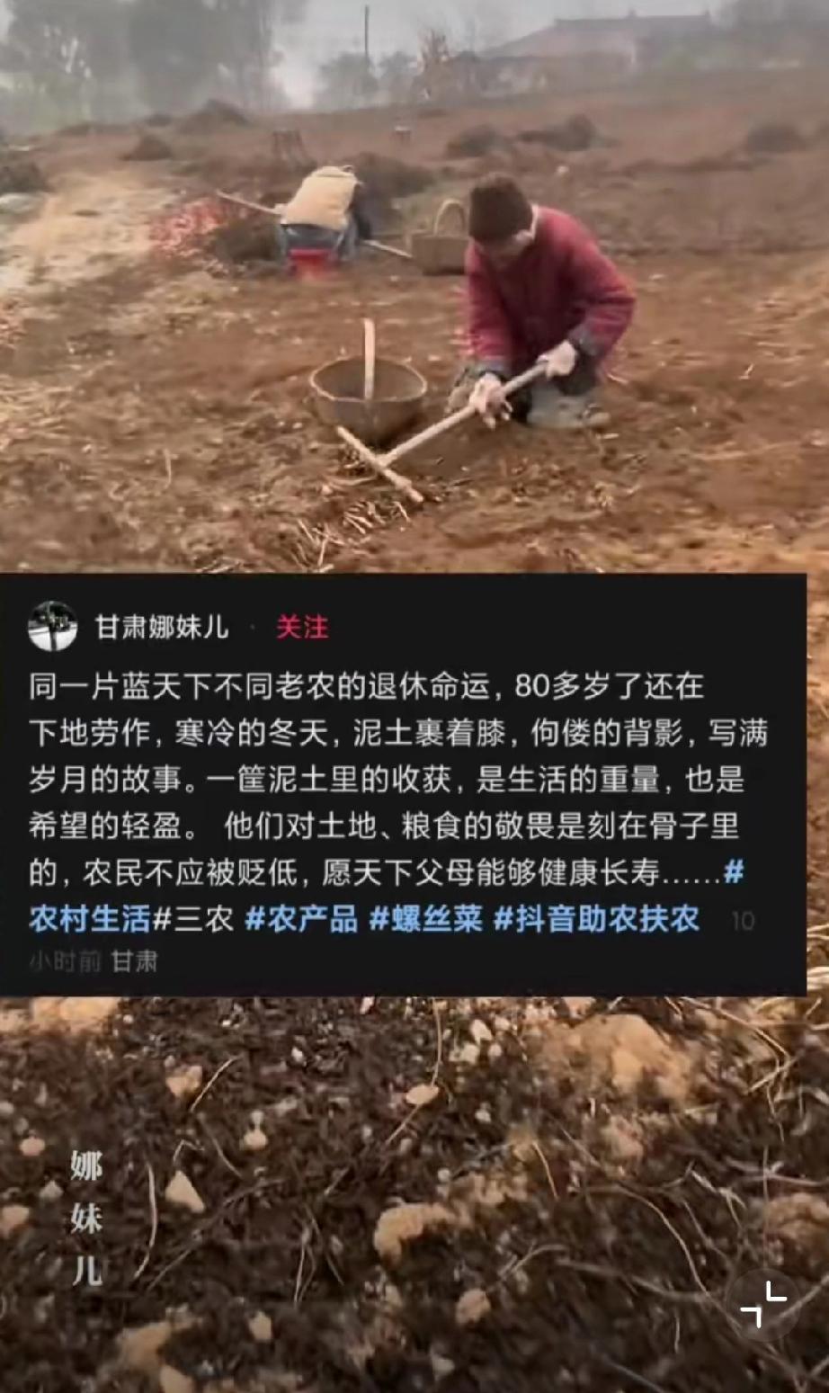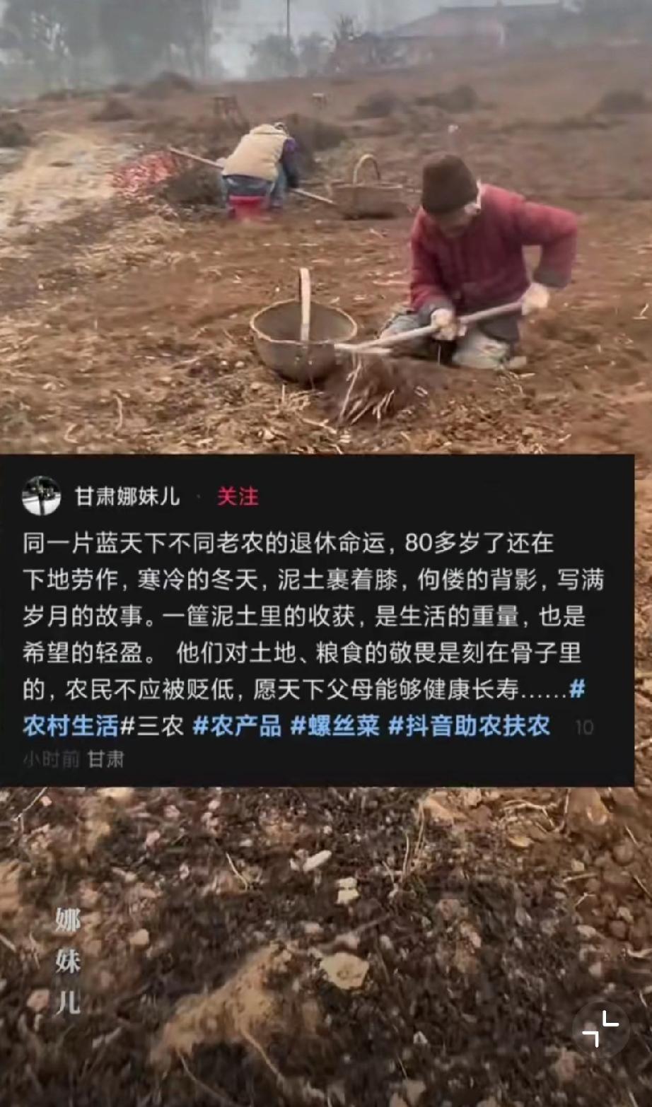 被一位网友评论整破防了!11月9日,网友发视频称80岁老人下地劳作准备制作泡菜(来源:甘肃娜妹儿)一网友评论:她的妈妈看到一定会哭的[流泪]农村网红老人 奶奶晒咸菜 甘肃农村老人