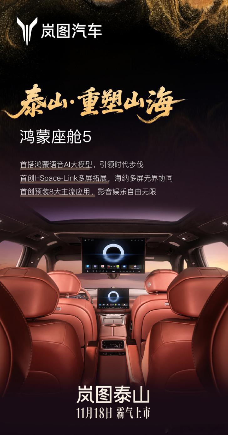 【岚图泰山官宣11月18日上市,将狙击极氪9X等】