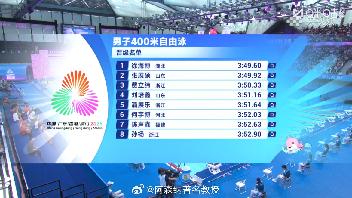 潘展乐孙杨晋级400自决赛潘展乐孙杨亮相全场欢呼 全运会男子400米自由泳预赛,潘展乐排名小组第五,孙杨排名第八,均顺利进入晚上的决赛! 全民聊全运