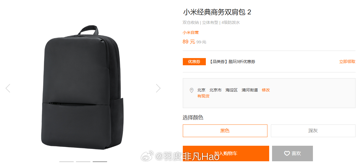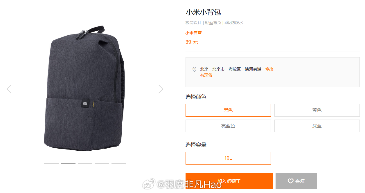 以前都是首选小米,但vivo这波活动太给力了,看了一下小米这边10L小背包39元、18L双肩包89元,估计vivo这款包原本是对标小米18L双肩包的。