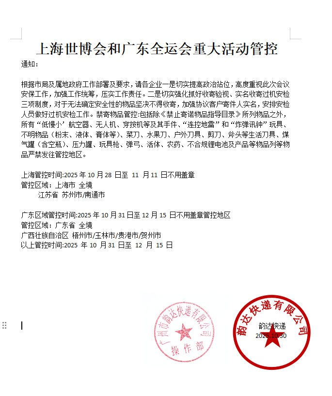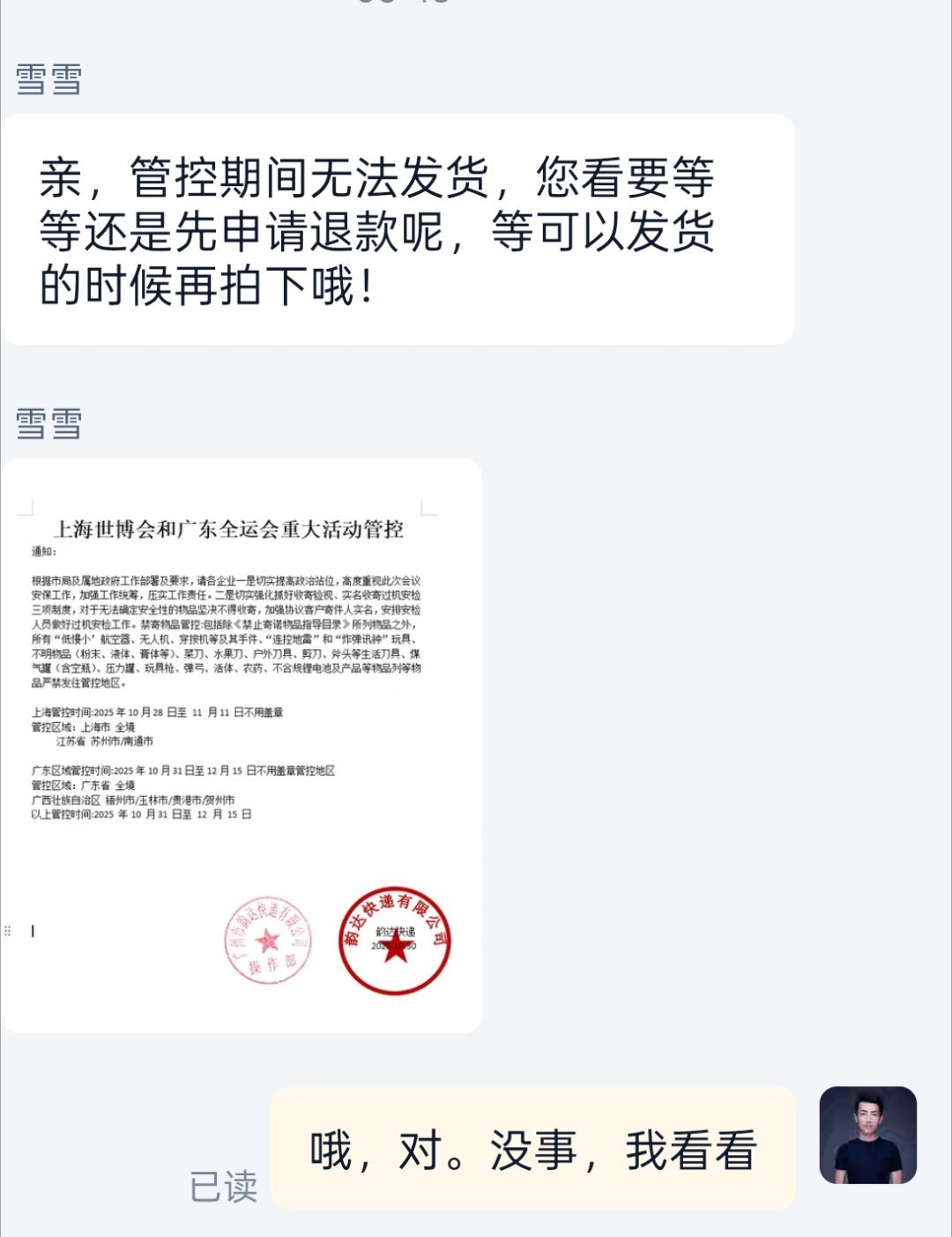 全运会好多到深圳的快递不能发货了。[傻眼]