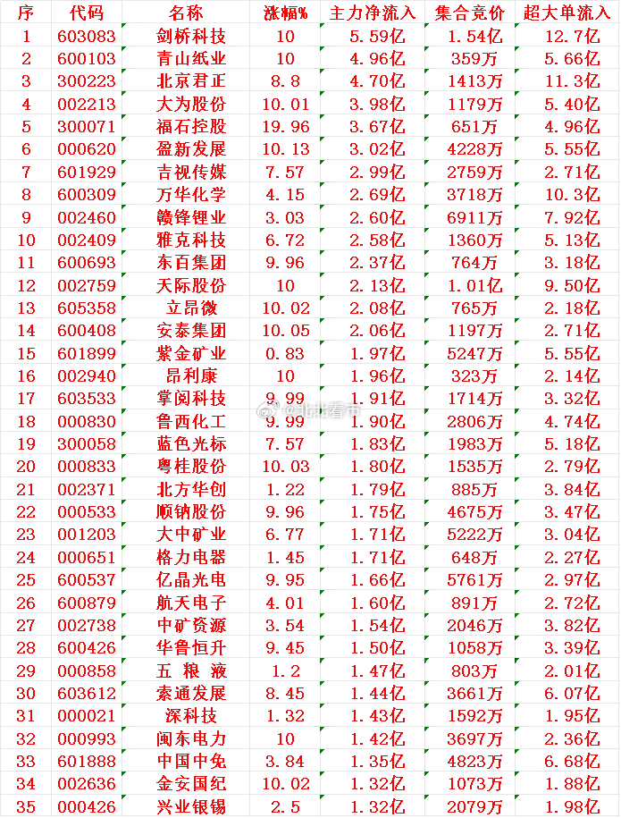 11月10日开盘45分钟,主力资金“买入的 ”的35名单一览!