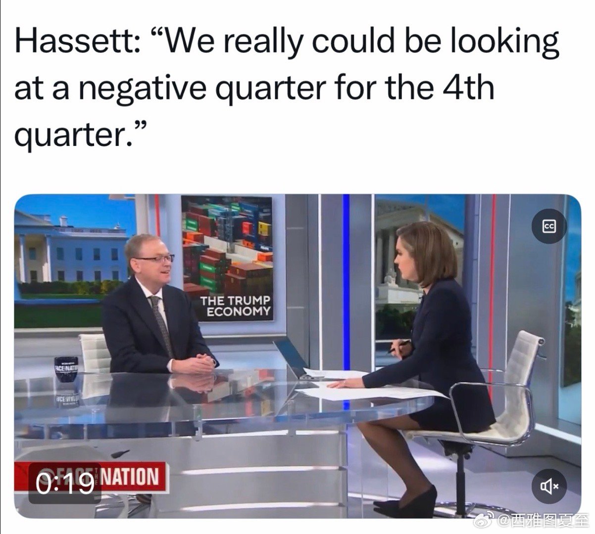 白宫经济顾问:高盛分析师推测,政府关门已经造成的经济损失,大约使GDP降了1.5%,我认为这个估算偏低,尤其是如果再拖一两周,对航空业的巨大影响、对感恩节出行和购物的影响…第四季度的GDP有可能会是负增长