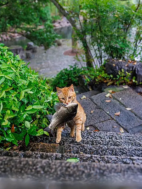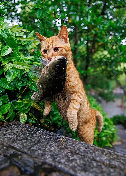我出息了,橘猫抓这么大一条鱼竟然让我看到了!
