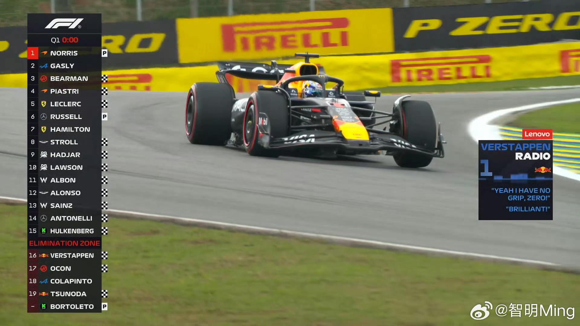 真的爆冷门,红牛居然双车Q1出局!意味着红牛两台车明天起步都很靠后了!F12025F1圣保罗大奖赛