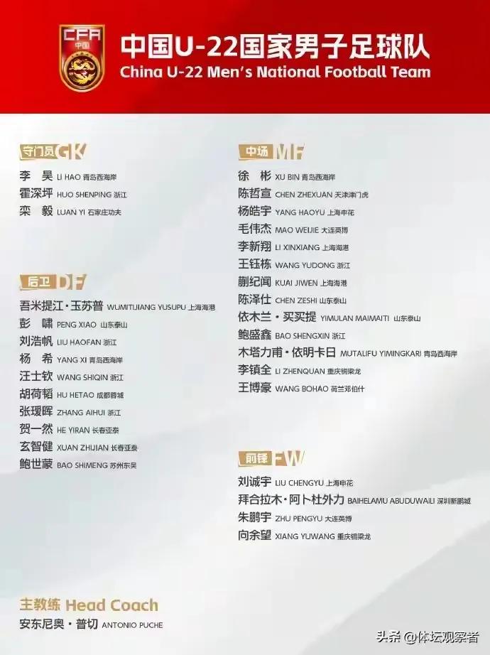 中国U22国足于11月9日已经开始集训,安东尼奥这几天面临人员不整的状况,由于受全运会男足U20赛事影响,好多球员将在“熊猫杯”开赛后才能赶到球队报到,比如上海的U20球员:刘诚宇、蒯纪闻和李新翔,山东队U20的陈泽仕、彭啸等人都将暂时缺席训练,参加全运会的球员最晚于11月13日14:00前到成都报到,而熊猫杯中国队首轮比赛对越南将在11月12日19:35开始,所以对越南安东尼奥阵容还不完整。王钰栋全运会受伤,已经到U22国足报到,希望不要有大碍,能赶上比赛。 本次“熊猫杯“锻炼价值极大,3个对手越南、韩国、乌兹别克斯坦都派出较强阵容来华比赛,这次比赛难度较大,但是机会难得,这也将是安东尼奥最后磨合阵容、积累经验的好机会,有助于中国U22国足明年U23亚洲杯做最后冲刺备战,中国U22国足加油!