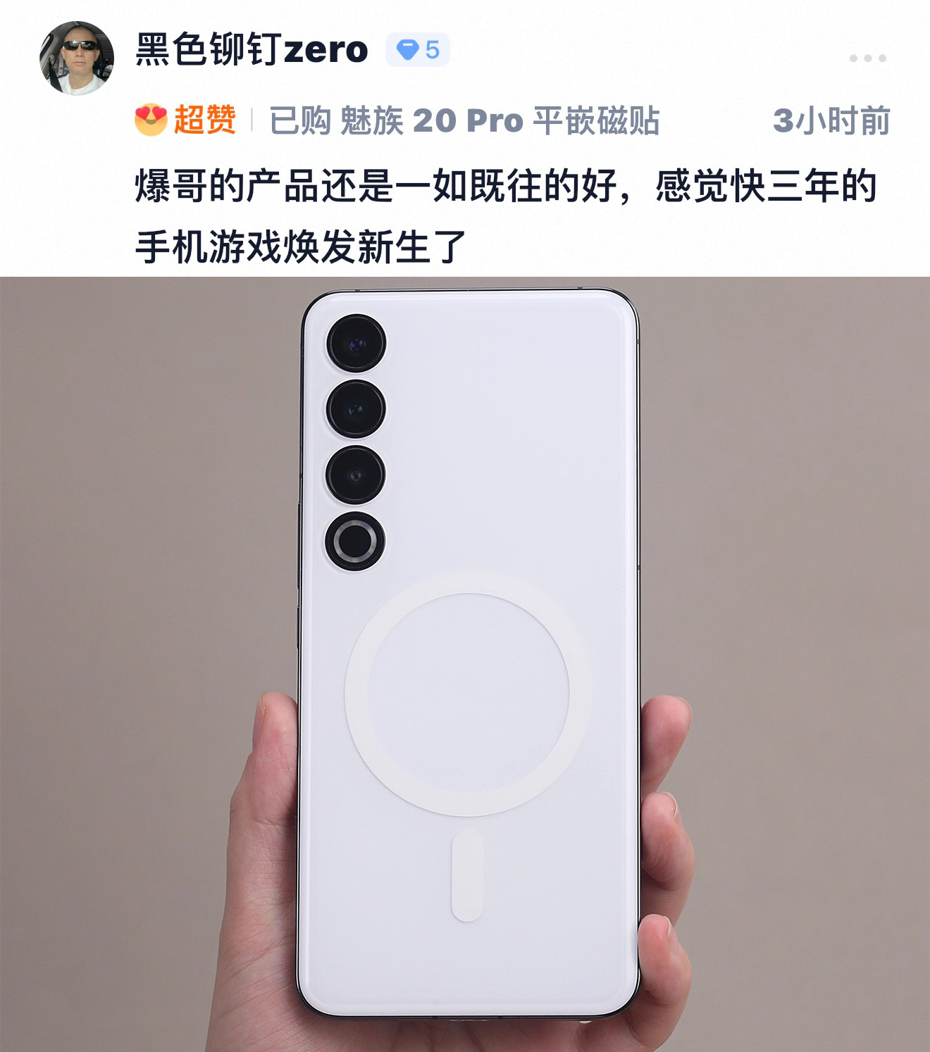 “焕发新生”[嘻嘻]贴上平嵌磁贴,像是给魅族 20Pro 换了个新后盖,还是带磁吸的
