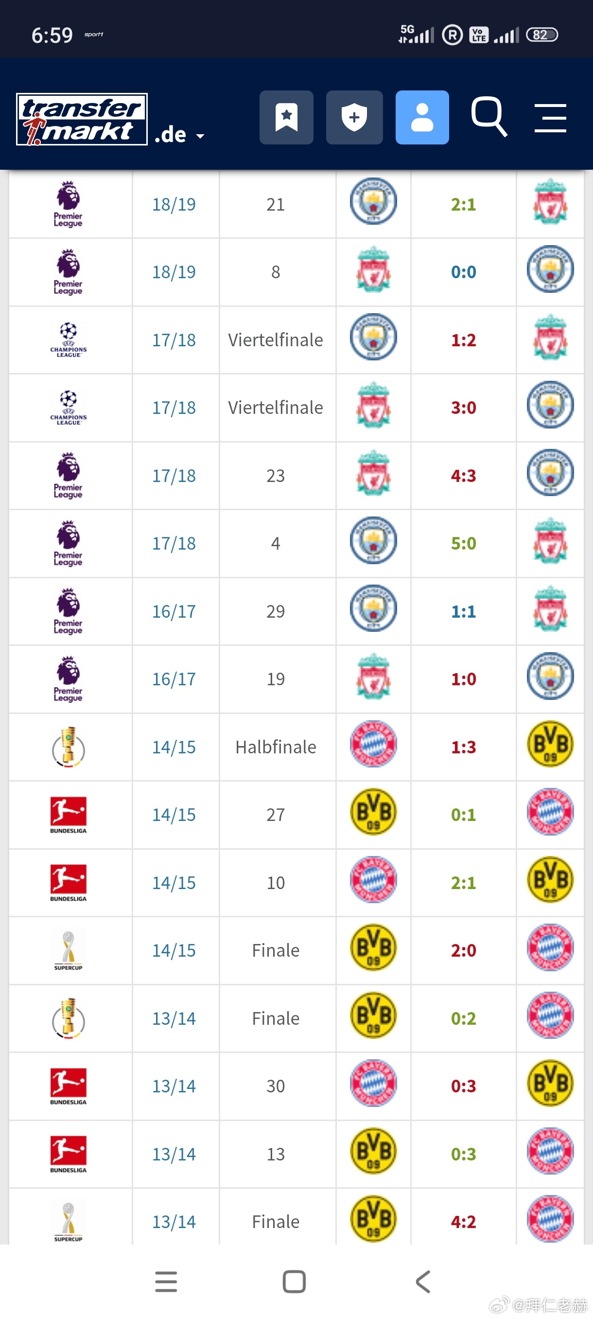 佩瓜和克洛普两人执教球队一共30次相遇,在德甲,双方4:4打平,从来没有平局,其中第一场拜仁输掉德超杯导致六冠王晚了7年才拿到。在英超佩瓜7胜7平8负,完全算得上是棋逢对手。