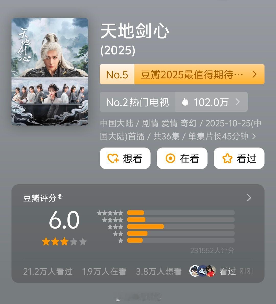 成毅天地剑心豆瓣开分6.0