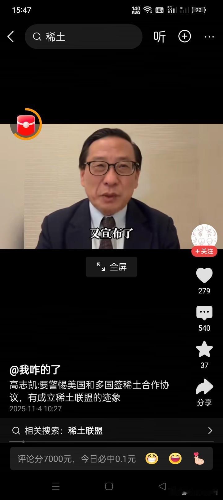 操哪门子心? 自己有稀土,并且会加工、提纯,当然好像可以想卖给谁就卖给谁,不卖给谁他就得不到,似乎谁也管不着。 但是,没有稀土的国家,为了获得稀土,联合越来进行开采、加工和提纯,大概也完全是别人的事情,旁人无论是如何说三道四,大概实际上也好像还是真的管不着。世界上限禁或禁止出口的基础矿物资材料,大概还没有同时禁止别的国家开采、加工和提纯的先例。 似乎有个很有名的大人物以前说过,封锁个十年、八年,什么都有了。现在觉得还是很有深刻的意义。