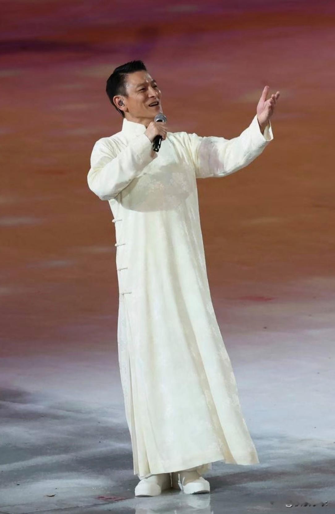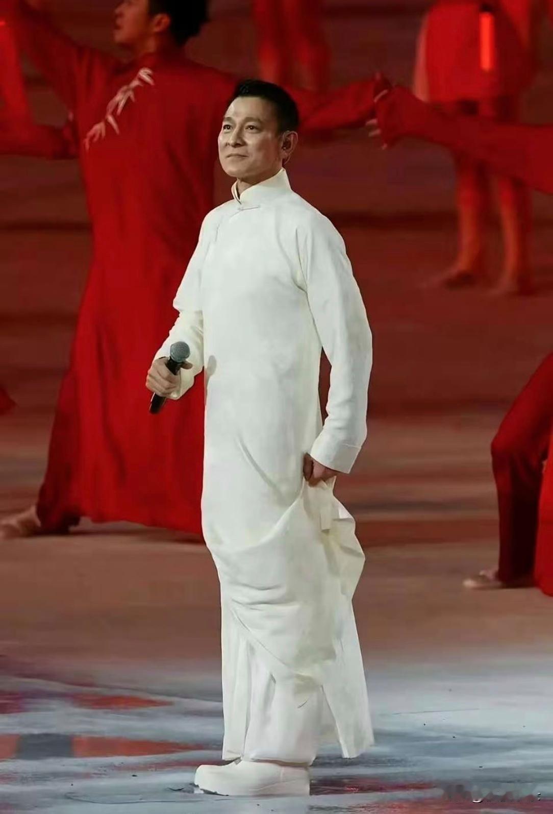 64岁刘德华现身日粤港澳全运会,他身穿白色唐装,站姿挺拔,气场全开,真的太帅了吧![得意][得意]