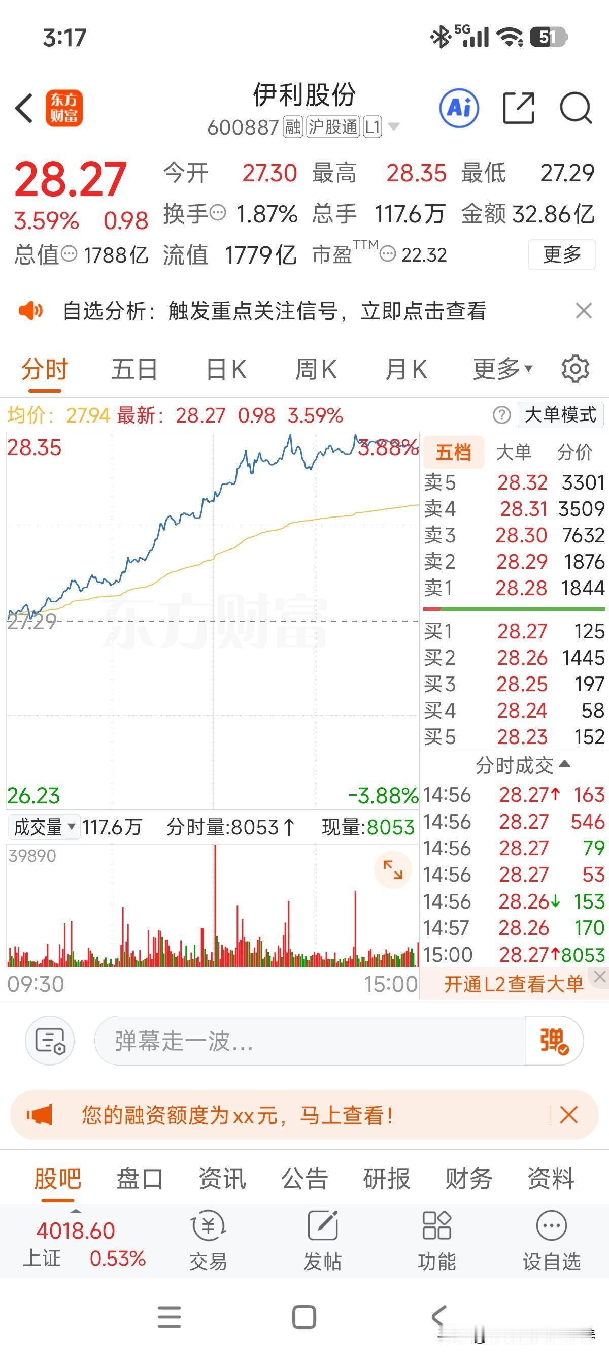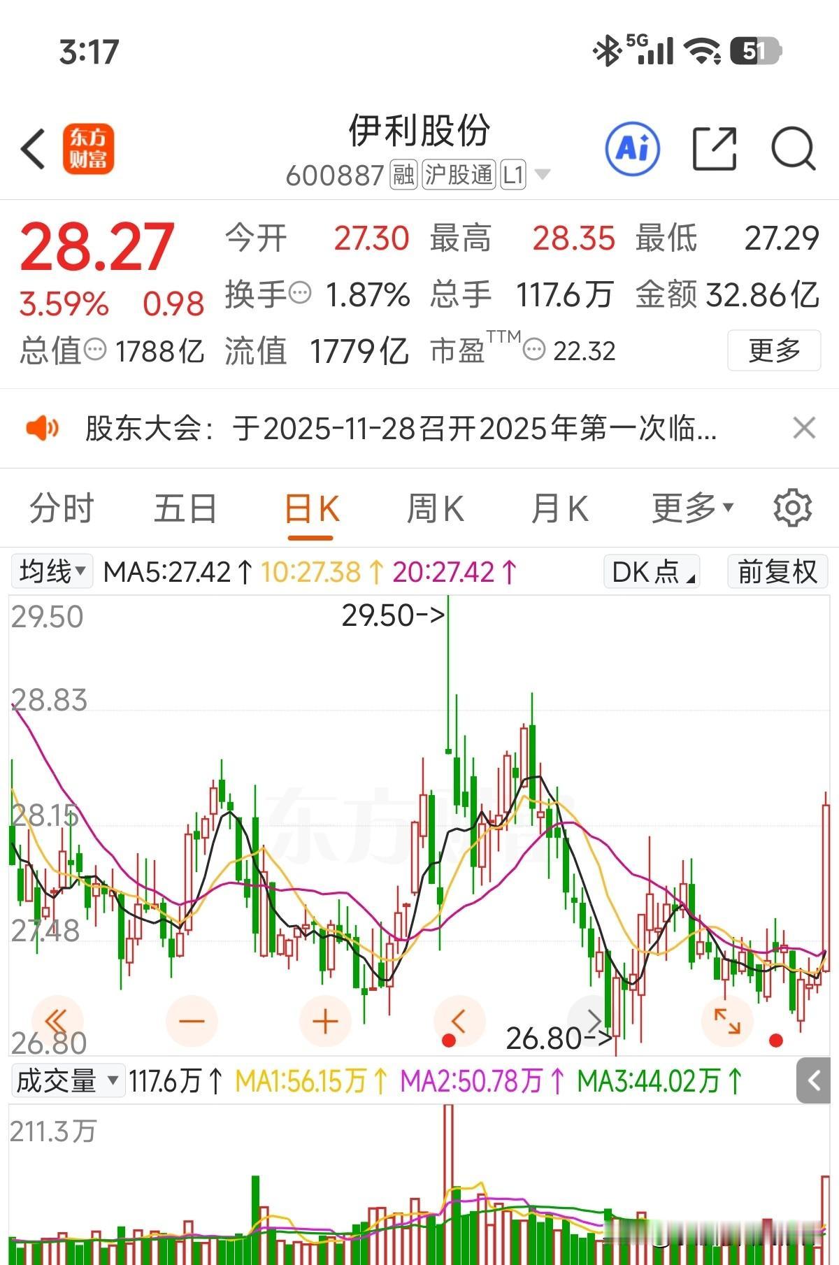 风吹过来了[呲牙],这根大阳线拉得够彪悍!成交量也释放得豪迈,今天成交量32.86亿,仅次于三季报财报披露成交量! 年的迷你仓位一直守到现在[呲牙],唯一遗憾的是,预估25年全年每股分红1.3元,指望26元5%股息率的机会估计很难等到了!