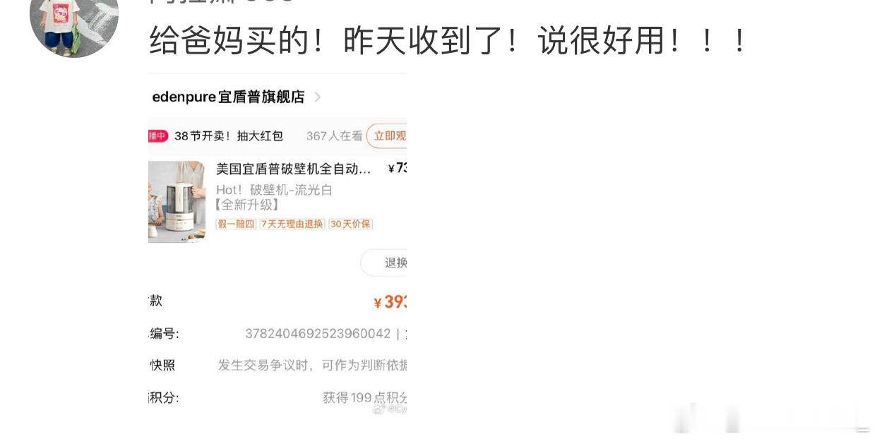 宜盾普轻音破壁机的反馈10,一直陆续收到大家的各种反馈[么么哒]我自己也用了三年了