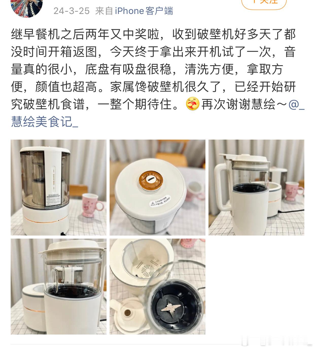 宜盾普轻音破壁机的反馈10,一直陆续收到大家的各种反馈[么么哒]我自己也用了三年