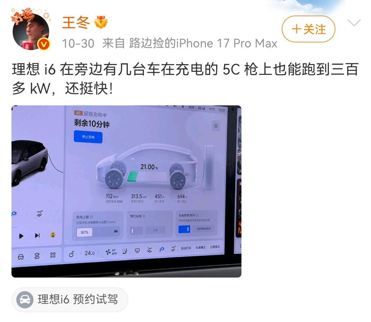 理想超充10分钟续航500公里,其实15分钟比较适合,因为车主上卫生间也不会那么着急[呲牙],你们觉得的呢理想l8电耗 理想L 理想纯电动车 充电实测 超充 理想汽车积分 理想隐藏功能 超充测试 新能源 理想l6 理想车l6