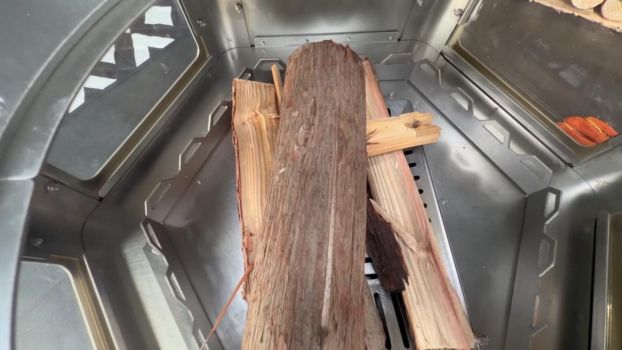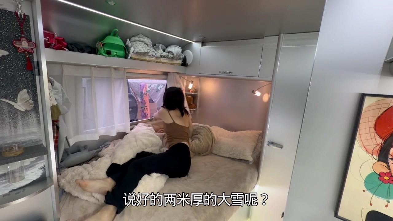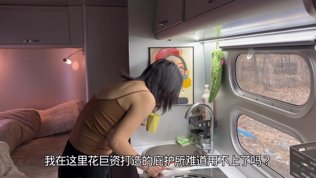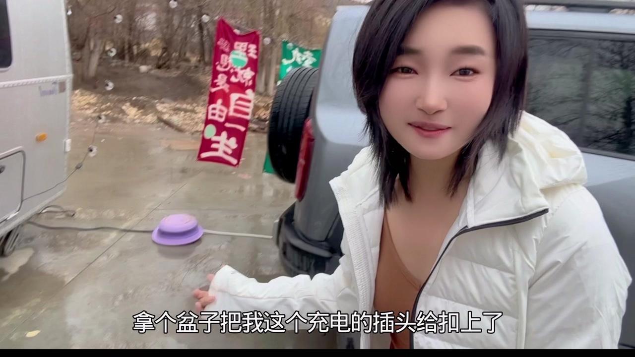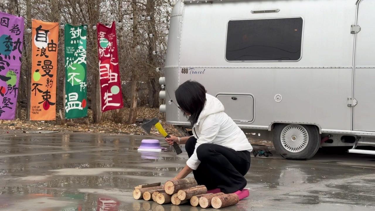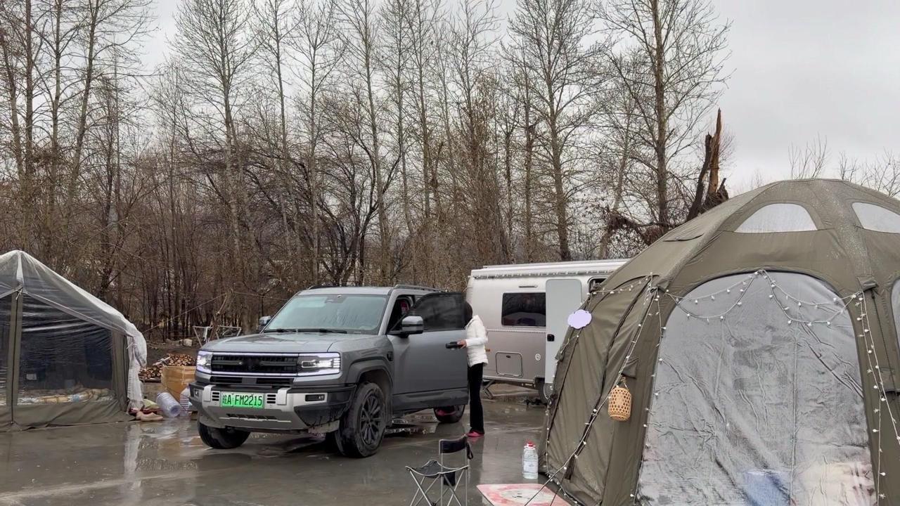 新疆阿勒泰的天气真的让人捉摸不透,说好的两米厚大雪和零下五十度,结果最近一直阴天,房车里面的电都快耗尽了。昨天晚上用小车给房车充电,半夜竟然下雨了,还好有车友贴心地拿盆子把充电插头扣上,现在电已经充满了。 今天下午要做一件大事——开柴火炉!这个从买回来就一直没开火的六边形暖尾炉,五个面的关火窗特别适合围炉煮茶。我准备了些柴火,先用酒精擦了擦炉口,据说这样开火更顺利。炉子有20公斤重,外面是304不锈钢材质,接灰网还特意设计成凸起来的,能避免木材贴到玻璃上熏黑。 劈好柴后,我赶紧把炉子点上。才烧了一会儿,帐篷里的温度就已经升到30度了,17.6个平方的空间里,这个20公斤的大家伙完全够用。透过玻璃窗看着跳动的火焰,所有烦恼好像都被治愈了,现在穿着吊带在里面,等晚上就能看雪景了,想想都觉得美好。