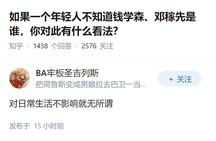 如果一个年轻人不知道钱学森、邓稼先是谁,你对此有什么看法?