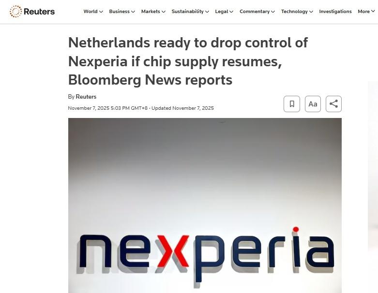 路透社援引彭博社报道,如果中国恢复芯片供应,荷兰准备放弃对Nexperia的控制权。 2025年9月底。荷兰经济事务大臣文森特·卡雷曼斯援引1952年《物资供应法》,以“经济安全风险”为由颁布部长令,强行接管中资控股的安世半导体。 这项命令不仅冻结了母公司闻泰科技对安世的管理权,还任命外籍人士担任非执行董事,甚至试图干预高管解雇和业务迁移决策。荷兰的强硬举动立即引发中国反制:10月4日,中国商务部对安世中国工厂实施出口管制,直接切断其全球70%产能的供应链。 这家占据汽车基础芯片市场领先地位的企业,其晶体管、二极管等产品广泛应用于车灯、电子控制系统等核心环节,断供导致大众、宝马等车企生产线陷入瘫痪,本田汽车甚至被迫削减北美市场11万辆年产量。 转折点出现在11月1日。中国商务部宣布对符合条件的出口予以豁免,释放出缓和信号。德国汽车零部件供应商欧摩威(Aumovio)随即成为首个受益者——该公司首席执行官在财报会议上证实,已获得中国书面出口许可,来自安世中国工厂的芯片正运往匈牙利分销中心。 本田汽车也同步跟进,宣布恢复墨西哥工厂生产。更耐人寻味的是,荷兰政府的态度在48小时内发生180度转变:11月6日声明“预计中国子公司未来几天恢复供货”,次日便通过彭博社放风“若芯片供应确认,最快下周暂停控制令”。 这种政策急转弯的背后,是欧洲汽车产业集体施压的结果——德国经济部公开呼吁“短期许可应迅速发放至行业层面”,欧盟贸易专员更直接介入三方对话。 这场博弈的深层逻辑,实则是全球化产业链与地缘政治的激烈对抗。荷兰的接管决定看似基于“国家安全”,实则难掩美国对华技术封锁的影子。 安世半导体虽为中资控股,但其荷兰总部与东莞封测厂的分工模式,决定了任何单边干预都会引发链式反应。 当荷兰试图用七十年前的法律工具控制现代企业时,中国选择用全球贸易规则反击:通过出口管制精准打击欧洲汽车业痛点,同时以豁免机制展现负责任态度。这种“以规则对规则”的策略,迫使荷兰在产业现实与政治叙事间艰难抉择。 值得关注的是,争端解决过程中暴露出多重利益纠葛。安世半导体与闻泰科技的财务问题尚未厘清,博世等企业虽获准进口却仍为供应中断做准备,显示市场信心恢复需要时间。 更微妙的是,荷兰的让步并非无条件——其声明强调“需确认芯片实际供应”,暗示双方仍在就具体条款博弈。这种“条件式妥协”反映出,在高度互联的现代经济体系中,任何试图将产业链武器化的行为,最终都会反噬自身。 从东莞封测厂停工到欧洲生产线瘫痪,从部长令颁布到控制权可能归还,这场争端揭示了一个残酷现实:当政治决策脱离经济规律时,市场会用最直接的方式纠正偏差。 荷兰的妥协不是软弱,而是对产业现实的妥协;中国的反制不是对抗,而是对规则底线的捍卫。正如观察者所言,全球产业链不是政治筹码的赌桌,而是人类文明发展的血脉网络。 在这场控制权争夺战中,没有真正的赢家,但市场规律最终证明:违背经济逻辑的干预,终将输给产业需求的洪流。