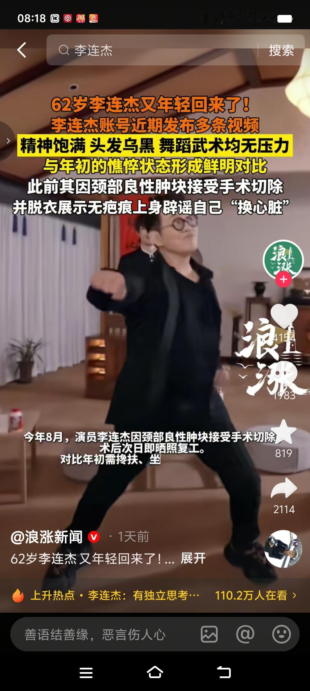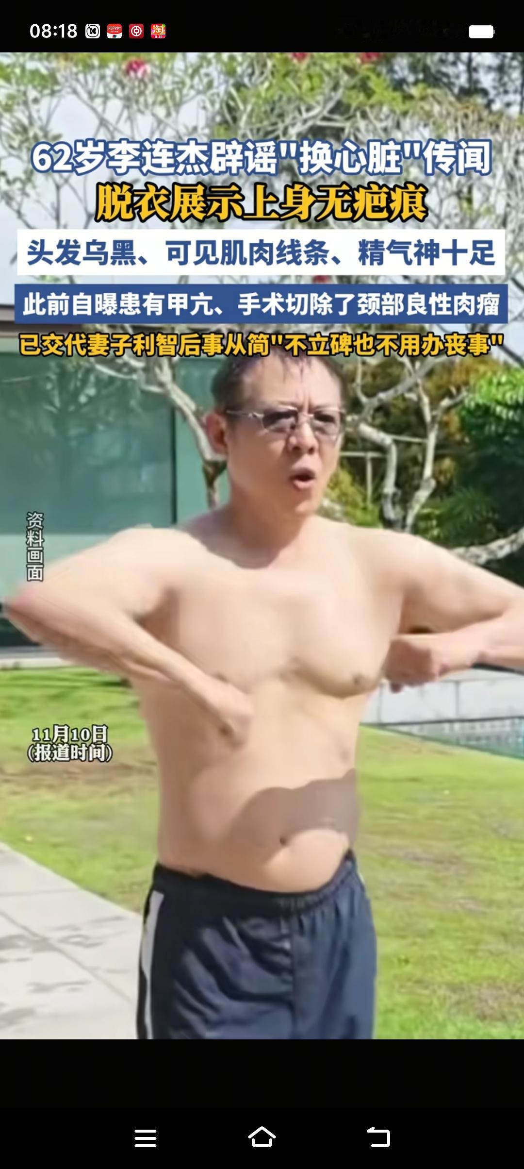 轮椅上坐的能跑了,搀扶走的能上山了,留遗嘱跳开广场舞了…。 不知最近大家有没有发现一个奇怪的现象,那就是曾经老态龙钟、体弱多病的名人或明星,好像突然一夜之间变的年轻了,个个就像打了鸡血似的,充满了青春活力。最典型的代表就是李连杰,现在跟以前简直是判若两人,为了证明自己身体没换过任何器官,李连杰还为此脱衣服辟谣。 当老人不再变老时,那孩子也就长不大了。所以说医学的进步既让有钱人看到了希望,同时也让穷人深深的感到了不安和担忧。