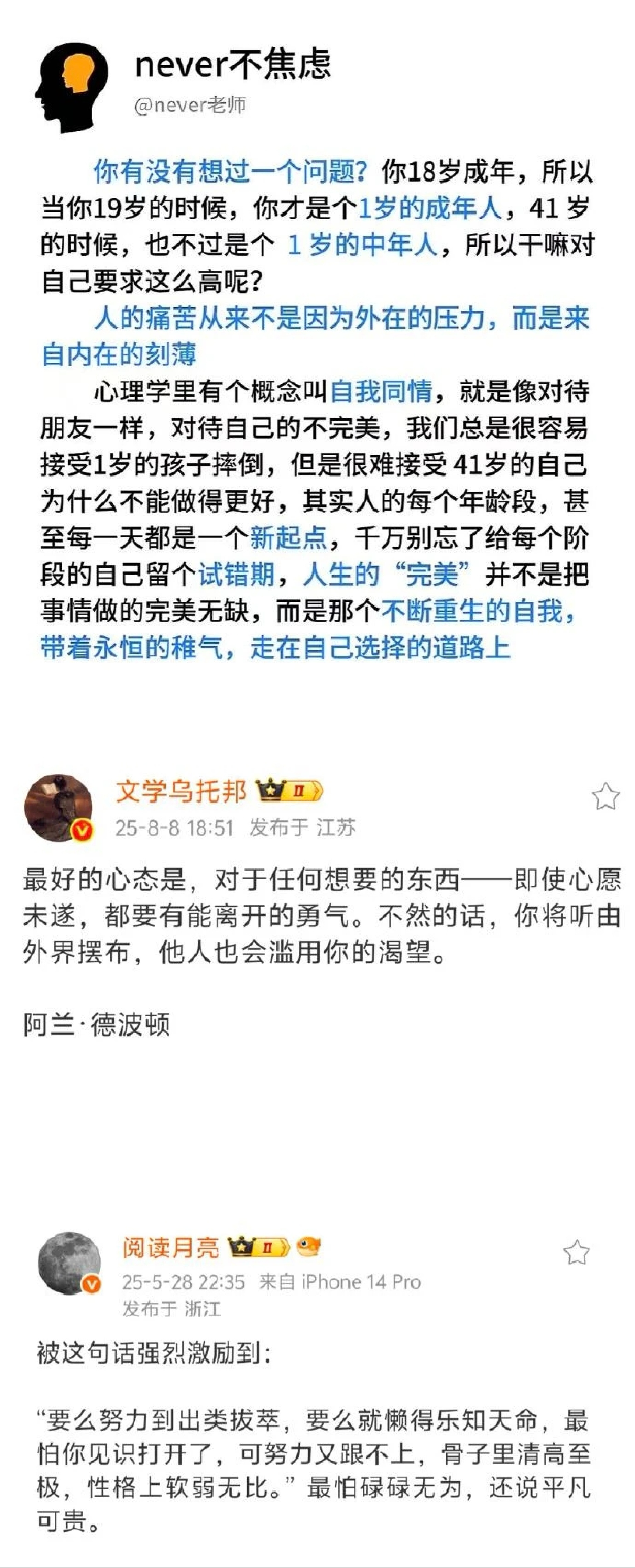 人生在世,在你不用考试的时候阅读,在你不缺钱的时候学习投资,在你不生病的时候照顾好健康,在你不感到孤独的时候培养友谊,在你独自一人就很快乐的时候再去恋爱。要有多少阅历,才能说出这么通透的话。满谈语录