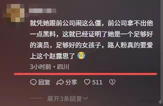 就凭赵露思和公司闹的这么僵,可前公司拿不出一点黑料,这就已经足够证明她是一个很好的演员。