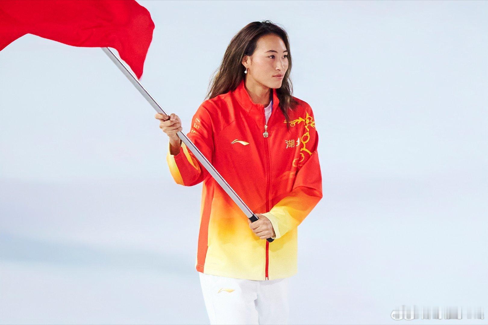 Queen Wen更新社媒晒照:很荣幸能担任湖北代表团旗手,参加第十五届全国运动会开幕式,为每一位拼搏的运动员喝彩