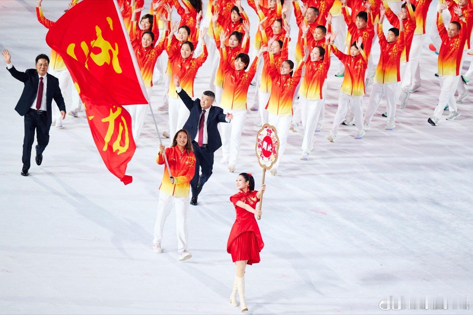 在全运会开幕式上,网球名将担任湖北代表团旗手