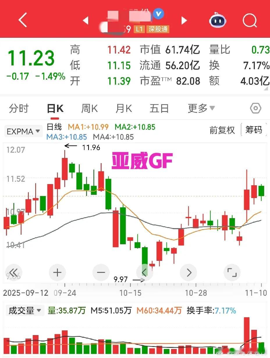 亚威GF,近三天的状态,是缩量收敛三角形的整理形态。