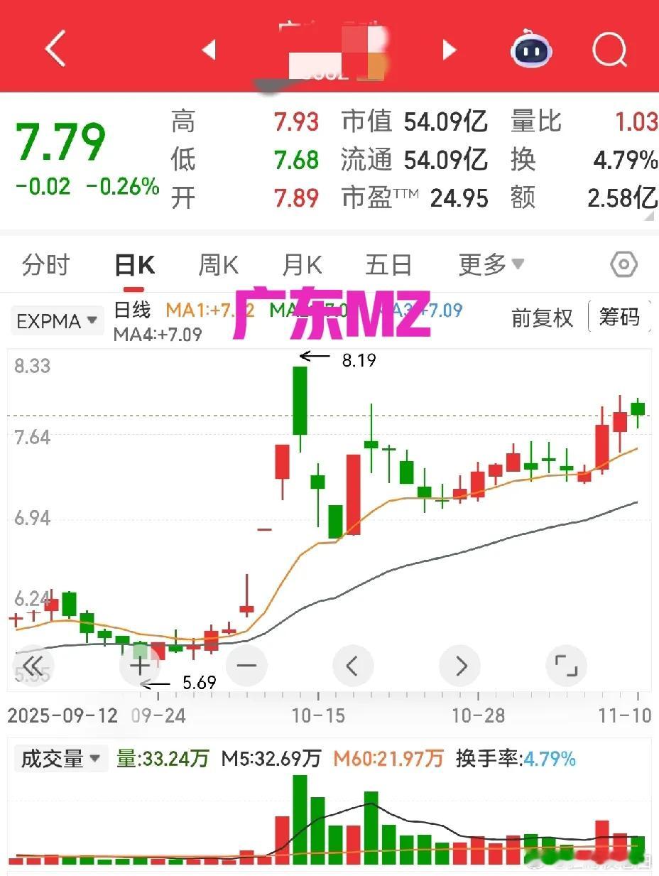 广东MZ此前曾收获两连板,随后进入调整阶段,这一轮调整时长接近一个月。在这一个月左右的调整过程中,其股价每次触及第一道生命线都能成功止跌,展现出极强的支撑力,颇为奇特。
