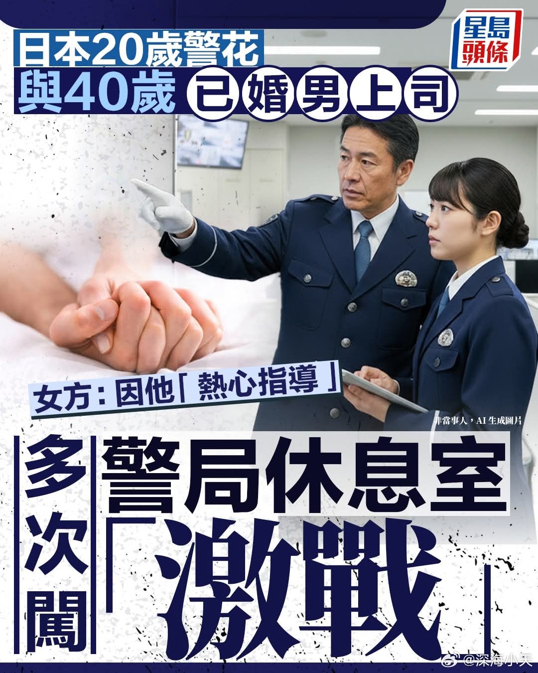 神奈川县警方7日公布,40多岁的秦野署地域课男性巡查部长,以及20多岁的女性巡查警员,在今年6至8月的深夜当值期间,于派出所内休息室多次发生性行为。