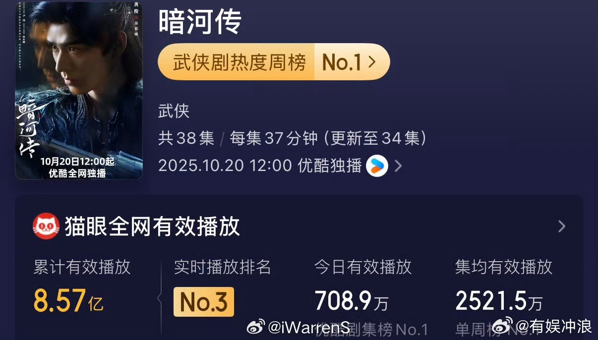 暗河传有效播放量破8.57亿龚俊暗河传播放量破8.57亿龚俊暗河传播放量破8.5