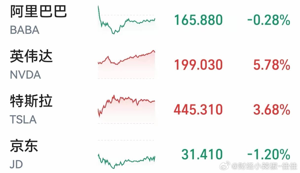 不仅如此,个股也是涨多跌少,尤其是热门科技股,更是一飞冲天。英伟达暴涨5.78%,特斯拉大涨3.68%;中概股小鹏汽车暴涨16.15%,而阿里巴巴则下跌0.28%,京东下跌1.20%。