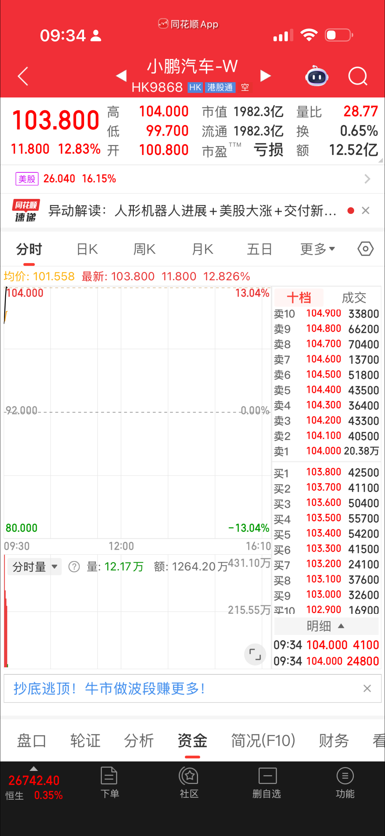 小鹏昨晚美股起飞,今天港股涨势喜人,根据我的多年吃瘪经验,今天是卖出好时机。[笑cry]