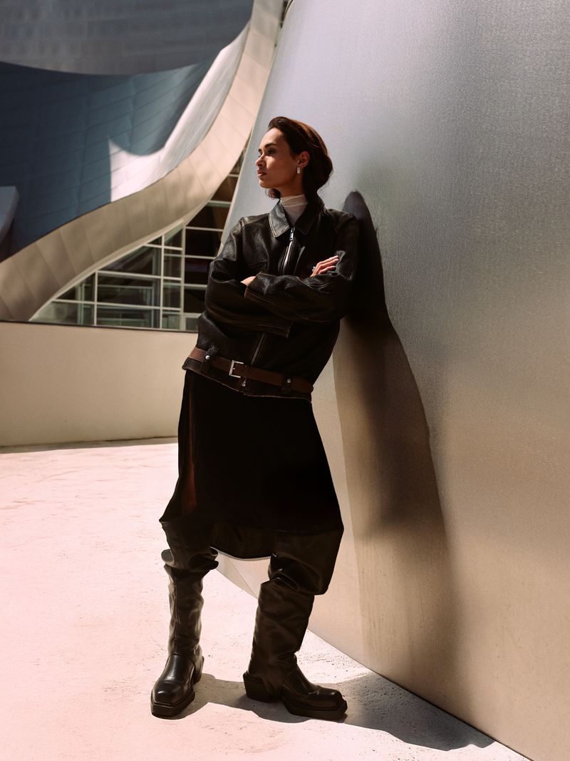 模特Gizele Oliveira出镜斯洛文尼亚版《ELLE》2025年11月刊,演绎“Back to the future 回到未来”主题时装大片,这个也是经典选题了|摄影:Dominica Jarczyńska/造型:Ovidiu Buta
