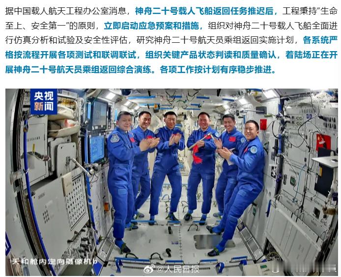 神舟二十号情况,今天有消息了。