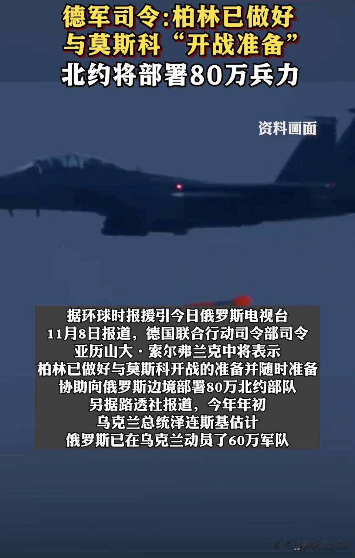德国联合行动司令部司令亚历山大·索尔弗兰克中将称柏林已做好与莫斯科开战准备,还准备协助部署80万北约部队到俄边境。这说法够大胆!这项计划源于去年的《德国行动计划》,要在冲突爆发180天内完成部署。 索尔弗兰克说俄罗斯有能力对北约领土发动有限攻击,还称莫斯科“最早明天”就能进攻。但80万对60万就真有优势?俄乌冲突久拖,俄欧猜忌上升,俄军控制更多乌领土,压缩了俄欧战略缓冲。不过战争可不是简单的人数对比,德国这是真要硬刚,还是在放狠话呢?