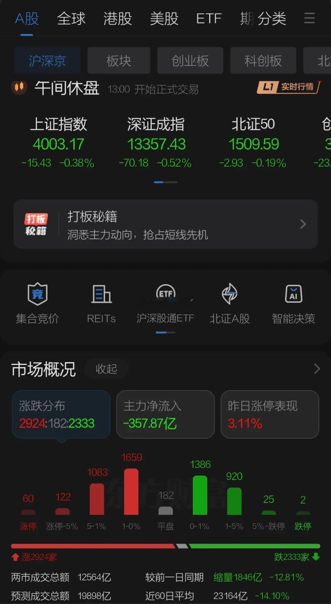 周二来到双11时间点,昨夜美股大涨早盘日韩股市上涨,港股和A股小幅高开后一路回落,港股处于沉闷回调,A股早盘新能源做出修复局部开启分化,午盘前有支撑市场的意图但有些独木难支,昨日大涨的消费出现回落,与煤炭石油一起压制市场,金融有托盘意图但最终没有成形表现沉闷,市场除新能源外只剩下题材股和部分传统领域活跃,大涨家数在150家热点混乱明显感觉赚钱效应不足,但好在市场在回落中大多数个股经历回调后表现沉稳,或许等待敏感时间走过后续再发力,同时感受到美股映射的苹果英伟达特斯拉概念连续两天走弱,热点有高低切换进入年度补涨的感觉,低位低价股依旧不断能掀起热点比较抗跌等待后续发力,此外期权在这样的环境下临近最后十天交易归零压力显现,当前依旧是双卖行情整体沉闷,预计指数回调完还是以年度补涨低位低价的题材股为主,新能源普遍走高后科技股大幅分化机器人短期不给力,需要券商和各路题材股不断助力,可继续控制好仓位重个股轻指数,市场沉闷和赚钱效应差不会是牛市常态,沉闷期走过调整充分后会继续前行,鉴于指数依旧优异整体继续看好后市可对行情保持好耐心。