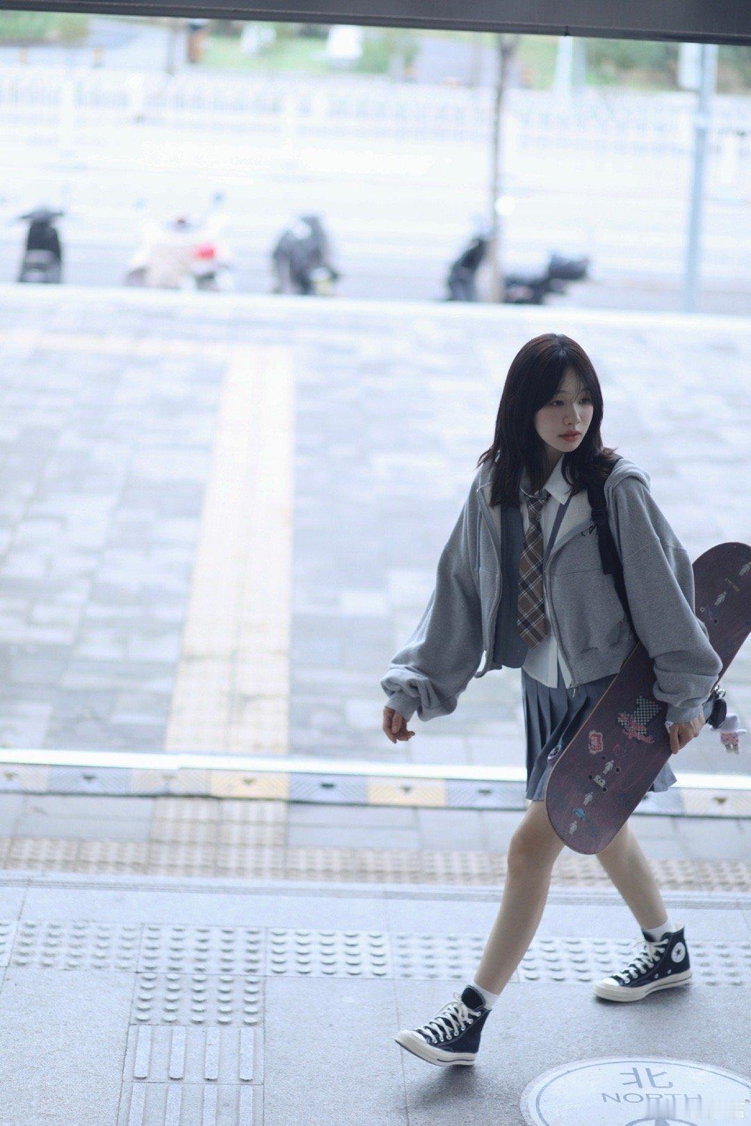 徐梦洁就这样穿着校服出现了 看到校服造型的徐梦洁直接被治愈了!她身上那种纯粹的青春气息,让人瞬间回到最美好的学生时代,仿佛她就是那个放学后约你一起滑滑板的邻班女孩!