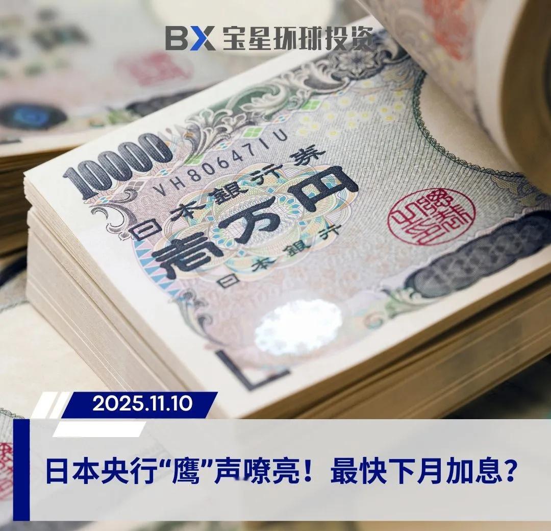 日本央行“鹰”声嘹亮!最快下月加息? 📈 会议纪要释放强烈信号,9人中8人支持加息,日本或进入新一轮货币政策转折点! 周一(11月10日)公布的日本央行10月会议纪要显示,决策层内部的加息共识正在快速升温,多位委员明确表示,当前企业持续加薪、通胀趋稳的形势,已为**“尽快加息”提供了充足理由**。 纪要透露,在九人组成的货币政策委员会中,共提出13条政策意见,其中多达8条呼吁应尽早上调利率,或为近期加息设定了明确条件。 🇯🇵【鹰派声音高涨】 多名委员认为,日本央行应趁势启动政策正常化进程: “尽管当前形势或许不需要立刻行动,但我们不应错过上调利率的时机。” 另一名委员补充称,若全球经济未出现负面冲击、企业薪酬增长势头得以延续,“日本央行可能在近期启动加息。” 甚至有委员直言: “推动利率正常化的条件已基本成熟,关键在于确认潜在通胀的稳固性。” 📊【政策分歧浮现】 在截至10月30日的会议上,日本央行仍维持短期利率0.5%不变,但已有两名委员投下反对票,主张上调至0.75%。这显示内部的“鹰派力量”正迅速壮大。 行长植田和男在会后记者会上表示,仍需观察更多数据,以确认企业在面对美国加征关税的压力下,是否仍愿意持续加薪。 🔮【市场预期:12月或明年初启动加息】 路透社最新调查显示,近96%的经济学家预期日本央行将在明年第一季度前加息,其中大多数预测时间点落在12月或明年1月。 日本央行加息 日本央行利率决议 日元汇率