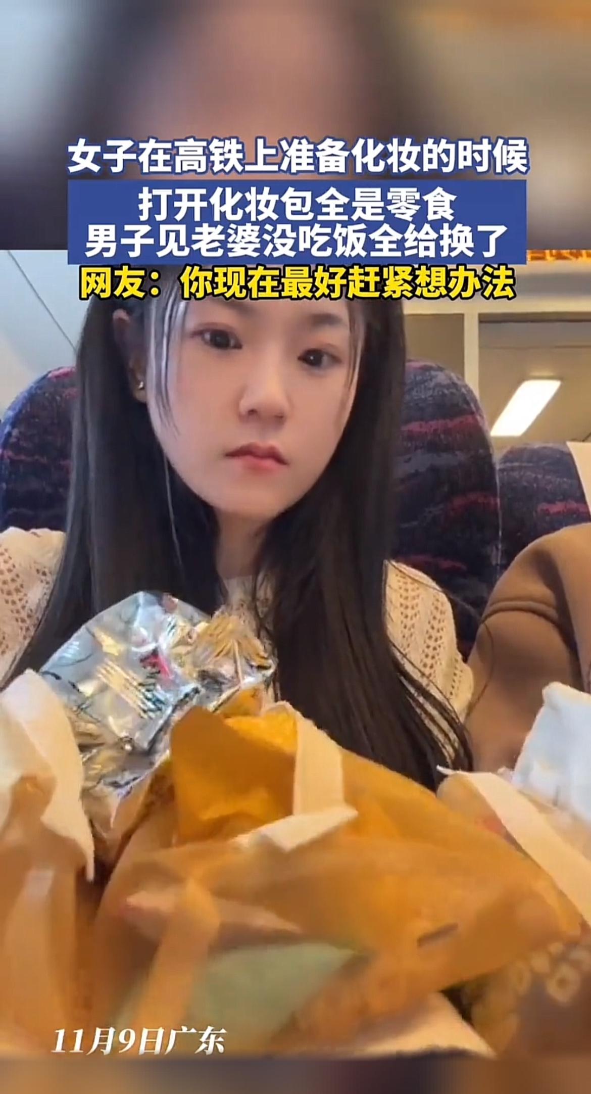 女子在高铁上准备化妆,打开化妆包却全是零食,这画面太有反差感了。估计是老公偷偷“改造”了化妆包。就像之前有个徐小姐坐高铁,把装着价值上万结婚钻戒的粉色化妆包弄丢了,急得不行,以为被人顺走,结果可能是自己疏忽。而高铁上化妆这事也有争议,曾有宣传片把高铁化妆列为不文明行为引发网友争吵。这女子打开全是零食的化妆包,说不定老公是想着让她先顾着肚子,别忙着“顾脸”啦。