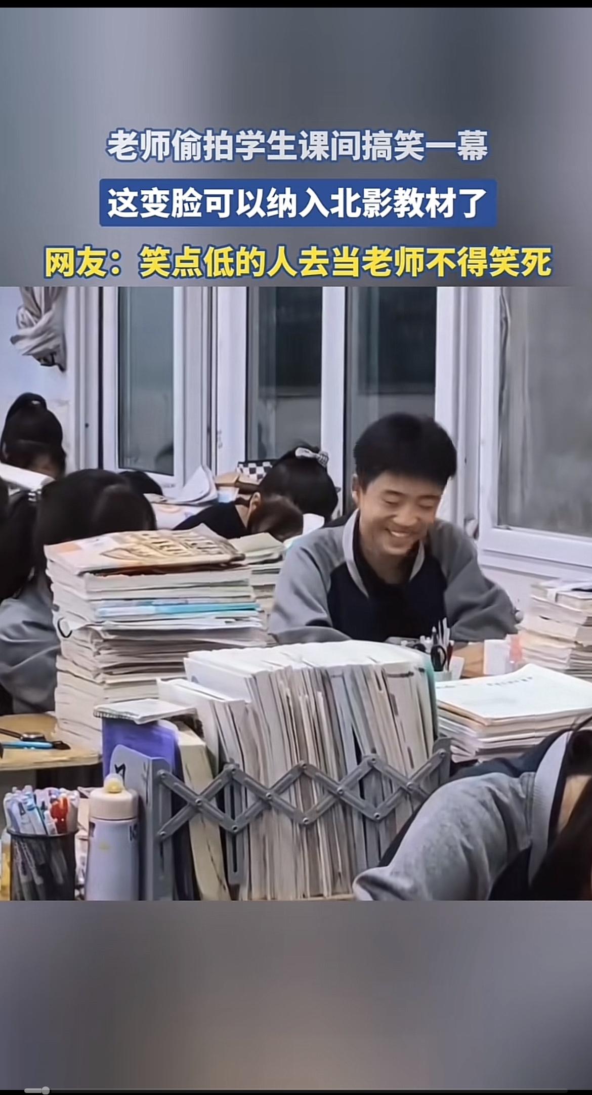 课堂上的趣事总能让人忍俊不禁。就说老师偷拍学生课间搞笑一幕这事,那变脸速度绝了,真能纳入北影教材。 想象一下,课间时学生们彻底放松,各种搞怪动作、表情层出不穷。可能前一秒还在和同学嘻嘻哈哈、打打闹闹,下一秒听到老师脚步声,立马正襟危坐,表情从欢快变得严肃,这变脸速度比翻书还快。 就像早读时男生躲在书本后偷偷唱歌,专注到老师来了都没发现;老师听写词语,不会的学生画了一本子圈。这些瞬间都充满了校园独有的欢乐与趣味,也成了校园生活里难忘的回忆。