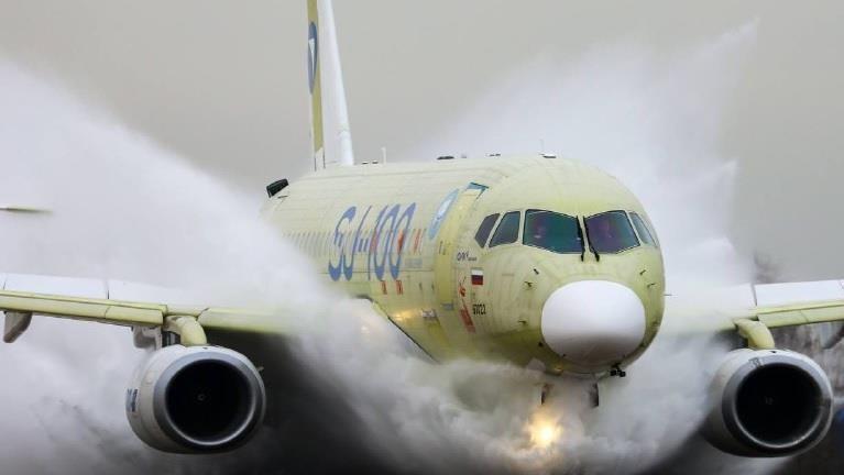 联合飞机公司对其最初的进口替代型 Yakovlev SJ-100 进行了吸水测试,该飞机配备了 Aviadvigatel PD-8 发动机。这架编号为 97023 的飞机在莫斯科郊外茹科夫斯基的格罗莫夫研究所进行了跑道积水测试。