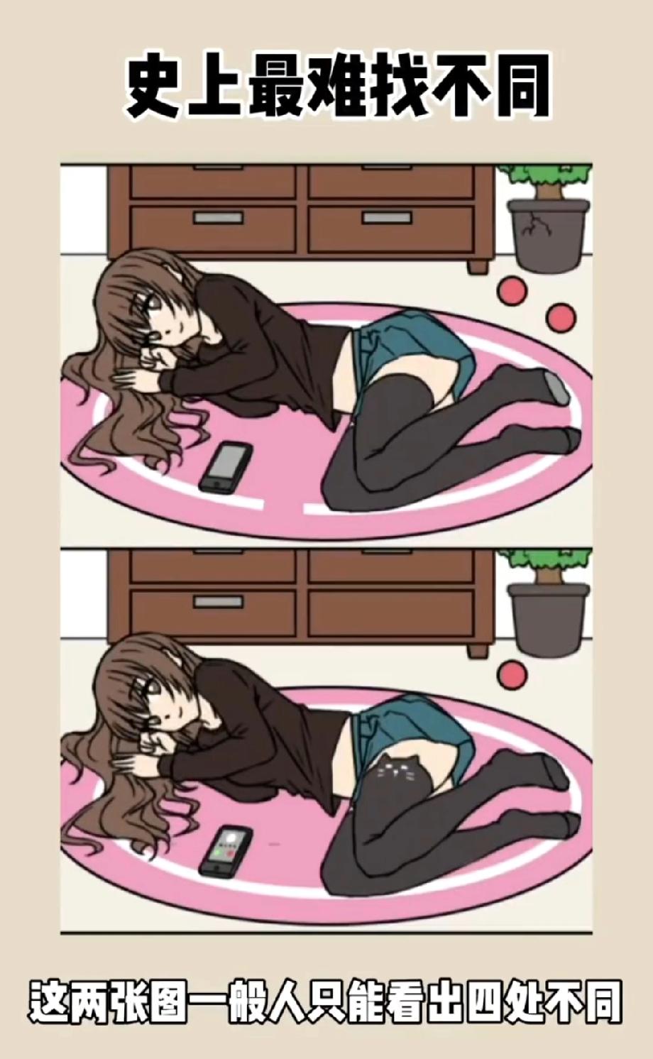 这‘史上最难找不同’我只看出4处!敢不敢来挑战,你能找出几处?评论区晒数!”