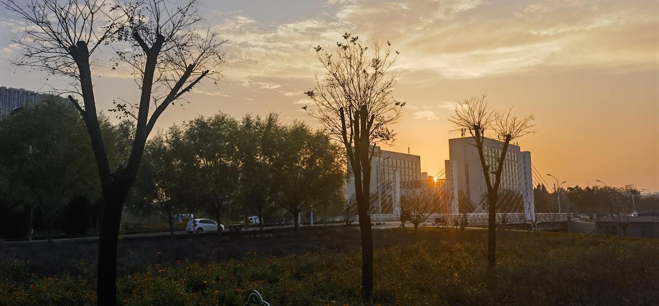 冬日晚辉 举起手机拍照,落日依旧光线强烈,晃得都睁不开眼睛。 打开相册一看,效果