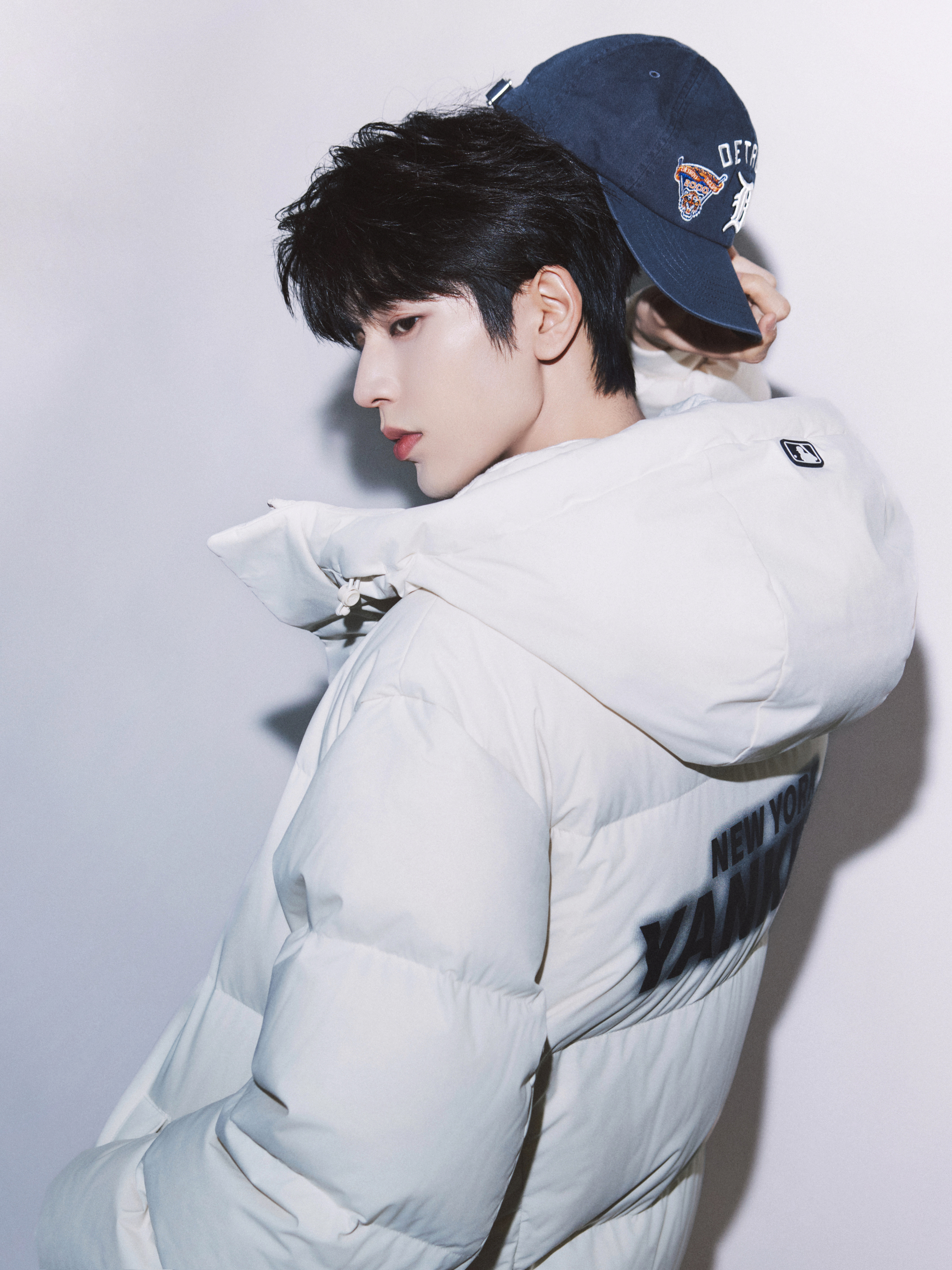 张凌赫 × 今日MLB 沈阳线下活动造型大片,白色羽绒大衣与纯黑内搭带来张力十足的视觉表现,时髦又保暖的冬日穿搭,潮流品牌代言人活力登场📸