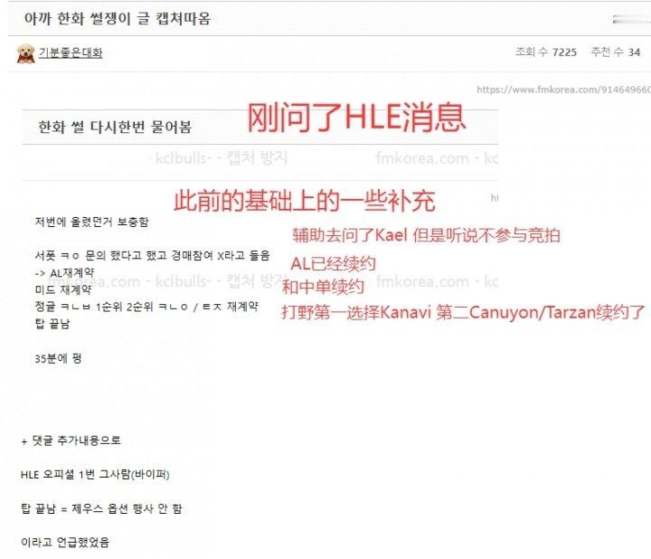 这是好事啊!韩网爆料HLE考虑无法补强Tarzan、Keal 两人已经续约 Zeus合同到期今日韩网有帖子爆料HLE转会期动向,表示考虑过Tarzan、Keal,但是两人已经续约,而上单已经跳出球员选项,中单Zeka续约,打野第一顺位考虑Kanavi。AL今年进步非常大,就是下路HOPE和顶尖有点差距,换gala行不行,感觉很契合AL打法,关键嘎子团战真能C